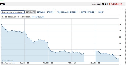 At $26, Groupon was worth around $18 billion. At $20, it was worth $12.7 billion. And at $15.24, it’s worth just $9.72 billion.